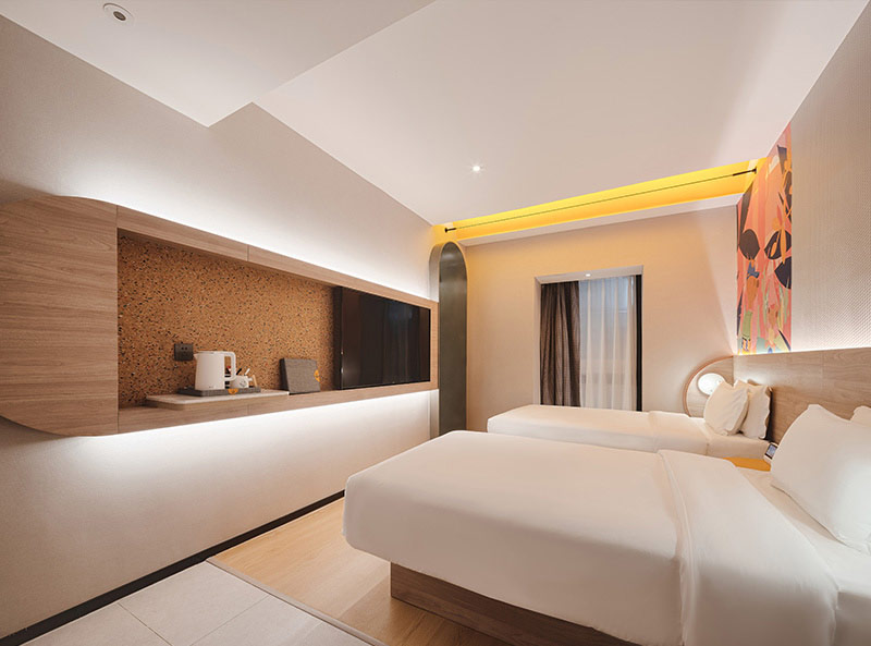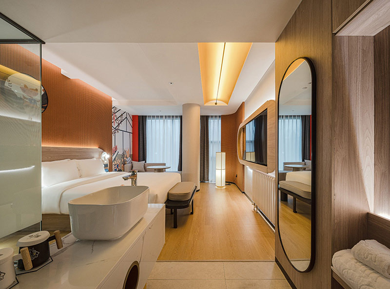 携家会朋做为携家连锁酒店旗下时尚酒店品牌,以“清新、时尚、欢快”为产品设计理念,突出超级性价比优势,被90及00后追捧。原创的袋鼠主题风格,则是以袋鼠妈妈带上宝宝为创造原型,来传递以家为核心的中华孝道文化。将袋鼠卡通形象灵活的融入到酒店的设计之中,袋鼠悬挂床头柜、袋鼠门牌灯,袋鼠母子孝图等。其中蕴含的寓意就是妈妈在哪,家就在哪,袋鼠妈妈的束带也寓意着这里是最安全的家港湾。